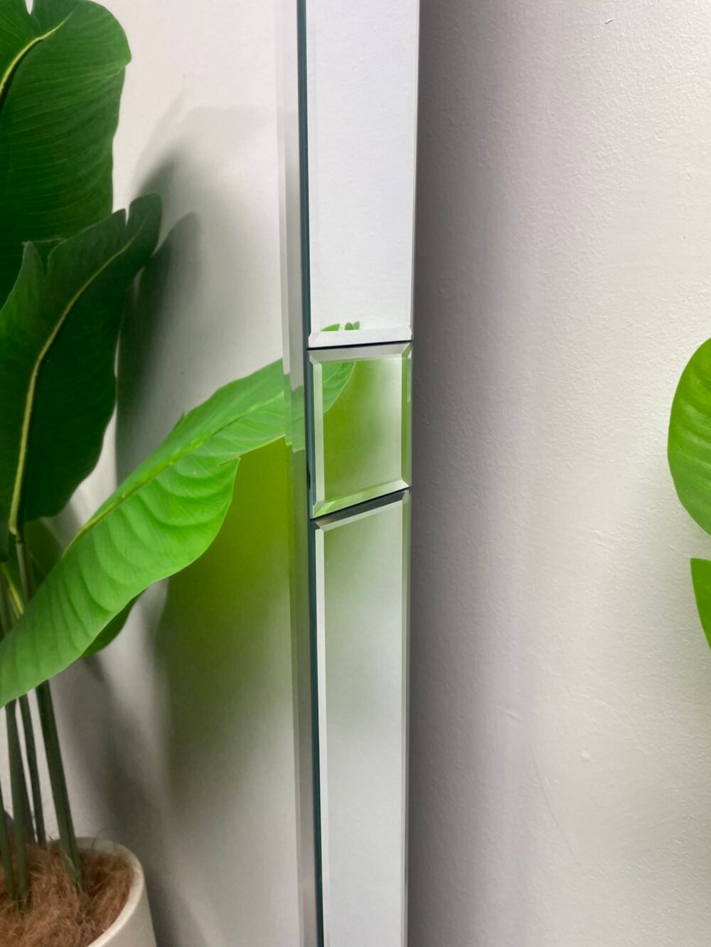 A contemporary styled mirror with classy reflective borders that give it a dazzling depth and presence. This large beveled mirror gives any wall extra pop and helps reflect and enhance your room’s lighting. Its dazzling glass frame is sure to be a real attention grabber in any room. It may be described as modern, or deco in style, and will suit houses both old and new wonderfully. It looks fabulous in an entrance, beside a bed, or as a dressing mirror in the bedroom. This beautiful mirror is of excellent quality and is imported by one of the largest mirror specialists in Australia.