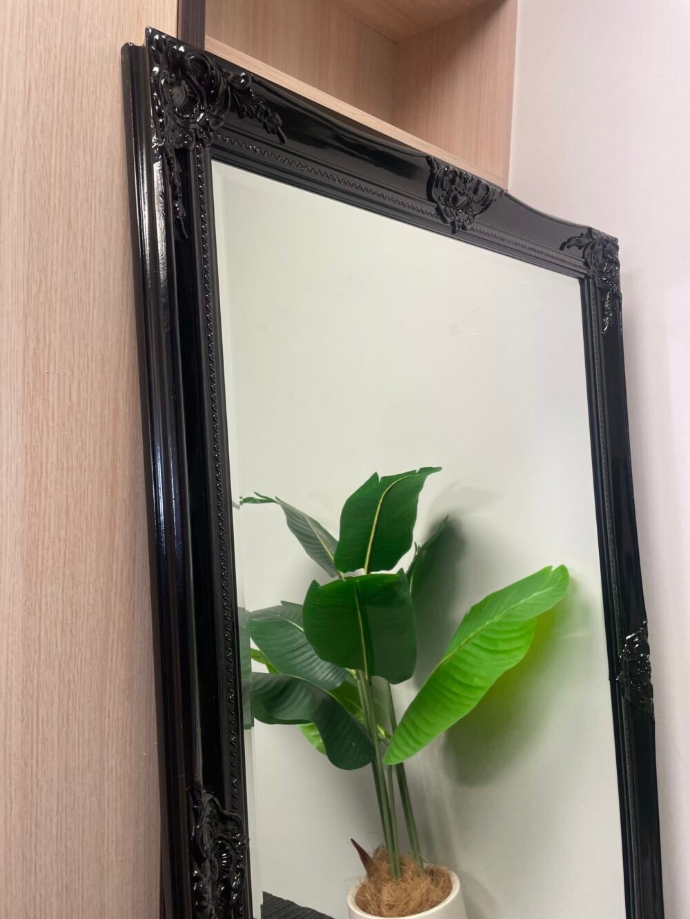 This large mirror gives any wall extra pop and helps reflect and enhance your room’s lighting. With black floral accents and a bevelled frame, this mirror is perfect for bedrooms, living rooms, bathrooms and more!